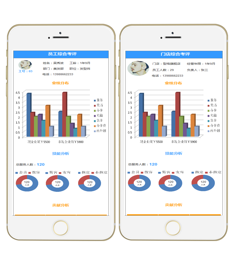 在管理者手机端我们提供的“目标”“客户”板块,可使管理者全盘掌握门店各项数据,同时对于那些依然需要参与服务的管理人员而言,同样可通过自己的管理端进行手机开单和服务......