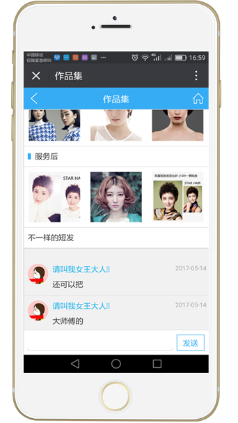 美+魔方运营管理系统在每一个线上门店里都开设一个独立的虚拟的网上社区,员工可在此发布作品,展示顾客消费后对此的评价,顾客也可在此进行评论、点赞,并可与其他顾客进行交流互动。顾客只需要通过门店微信既可进入社区,参与社区讨论,还可看到心仪的发型直接预约当值服务人员。
